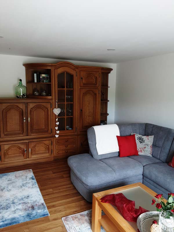 Sie besteht aus einem großen Wohnraum mit einer angrenzenden 10qm großen Terrasse mit Blick ins Grüne und hinüber zur schönen, einmaligen Dorfkirche bergauf in Kleinich.